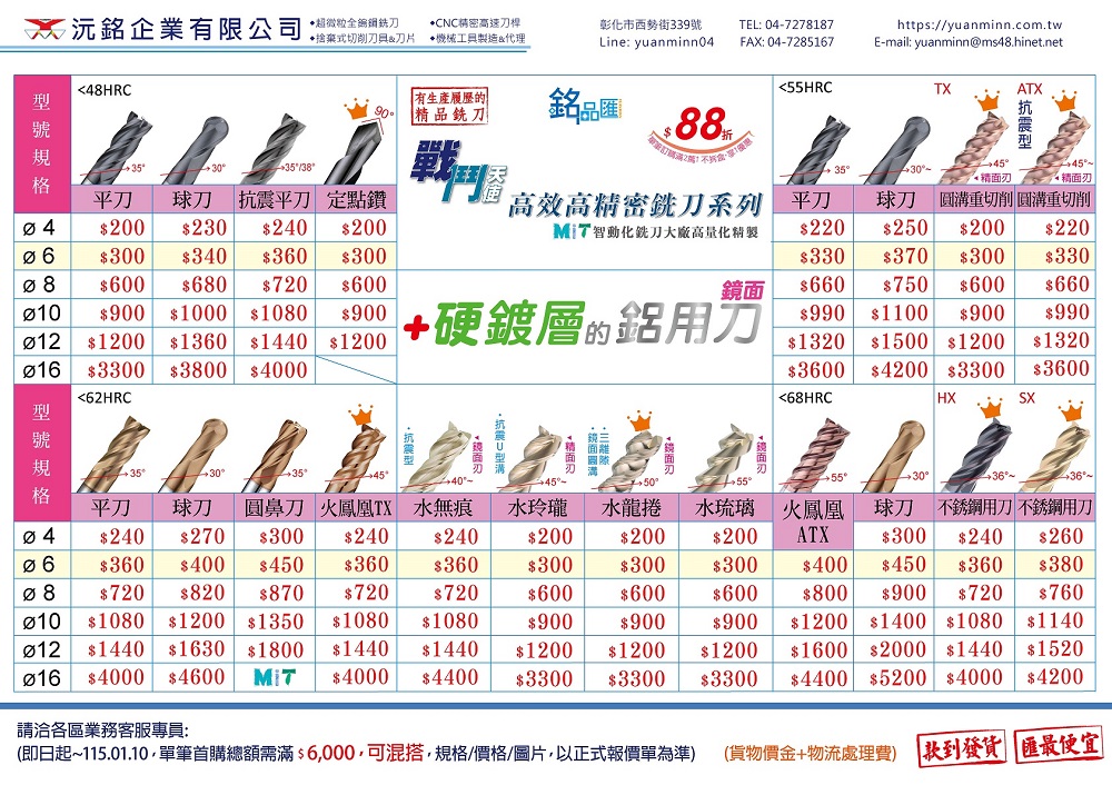 最新訊息*新品上架* HRC62強硬派~高硬耐磨鈦矽銑刀系列,強勢出擊! http://www.yuanminn.com/zh/news/12/353.html